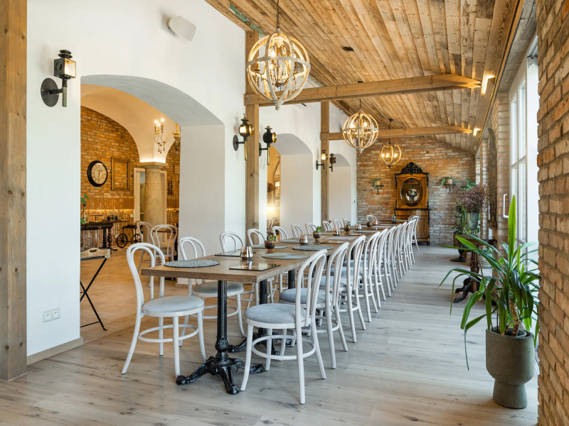 Rustikálna reštaurácia s dobovými klenbami, vhodná na rodinné oslavy a menšie svadby s kapacitou 45 osôb, ponúka príjemnú atmosféru.