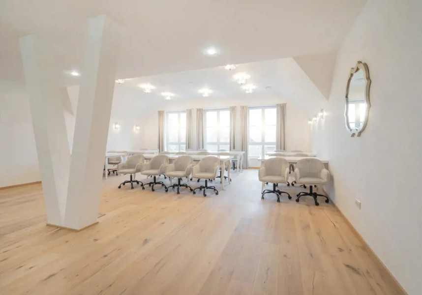 Moderná miestnosť s kapacitou 35 osôb, vybavená vlastným kávovarom a možnosťou coffee breaku, ideálna pre školenia, workshopy a menšie konferencie.