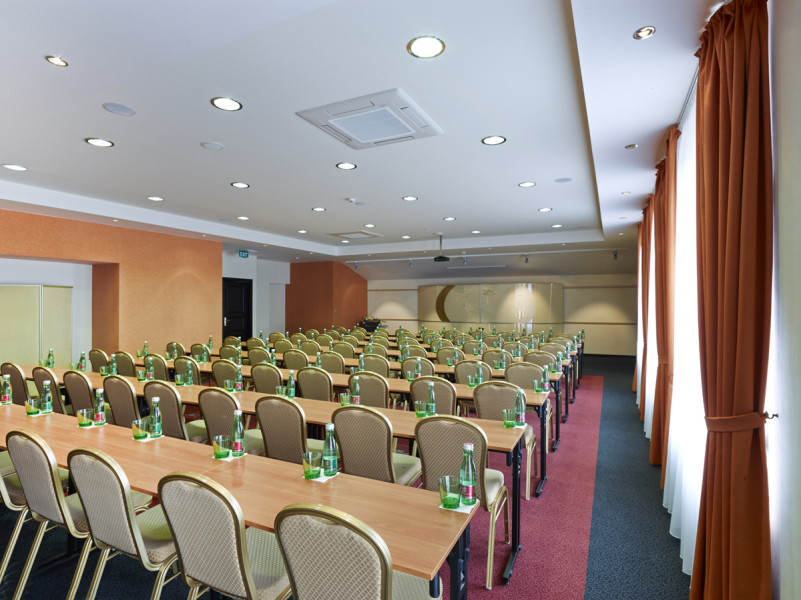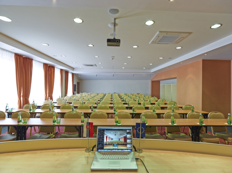 Klimatizovaná kongresová sála s kapacitou 90 osôb a modernou technikou.