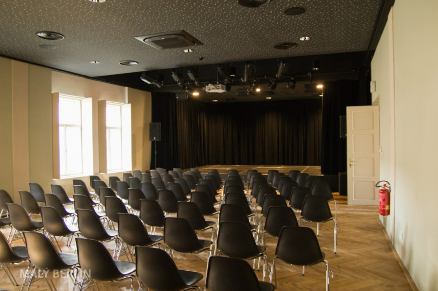 Priestor pre konferencie a kultúrne podujatiaHlavná sála s kapacitou 120 miest na sedenie alebo 200 osôb na státie, vhodná na konferencie, koncerty, divadlá a filmové projekcie.Vybavenie: