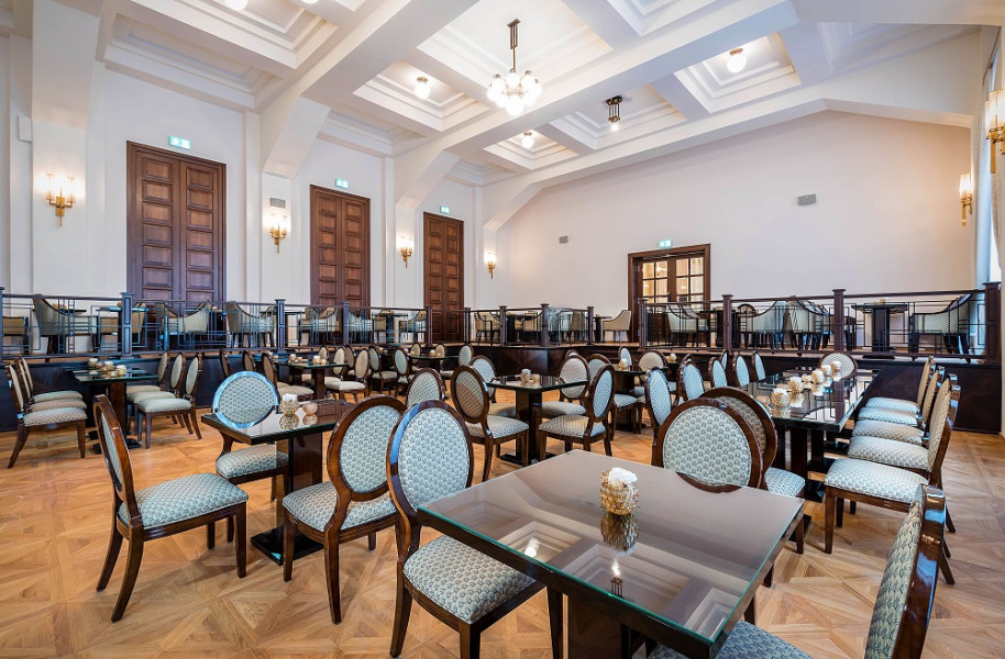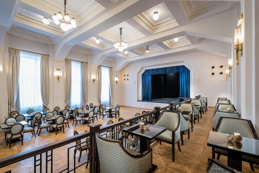 Spoločenská sála Kursalon je srdcom hotela, ideálna pre konferencie, bankety a slávnosti, s historickou atmosférou art deco a moderným vybavením.