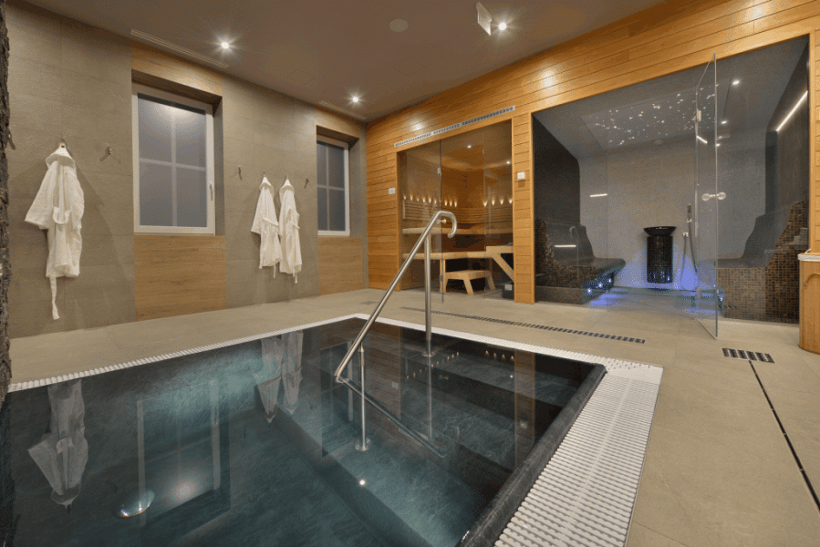 - Wellness s saunami, masážami a vírivkou.