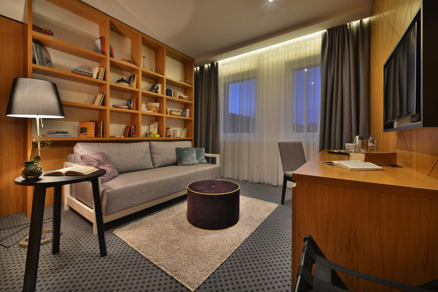 Kongresová sála EVA je najväčším priestorom hotela, ideálna pre veľké konferencie, semináre a slávnosti, s denným svetlom a klimatizáciou.