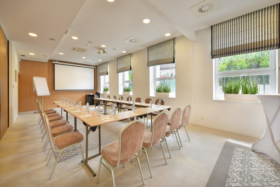 Konferenčná sála VILMA je ideálna pre menšie školenia alebo obchodné rokovania, s denným svetlom a klimatizáciou.
