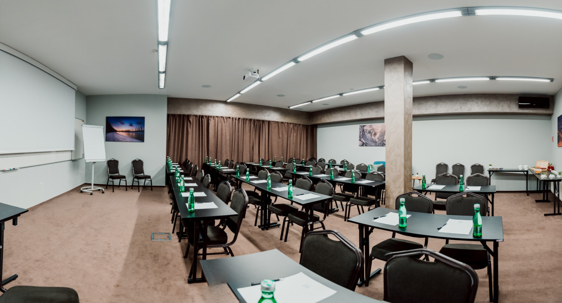 Konferenčná sála je ideálna pre menšie školenia, workshopy alebo obchodné stretnutia, s denným svetlom a moderným vybavením.
