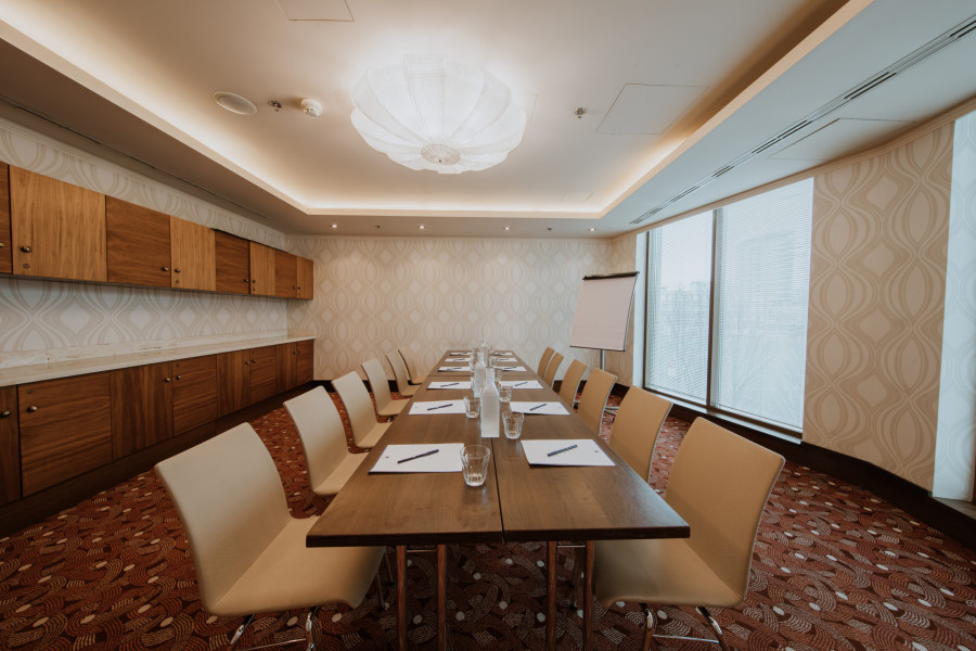 Embassy je ideálny pre menšie školenia alebo obchodné rokovania, s denným svetlom a moderným vybavením.