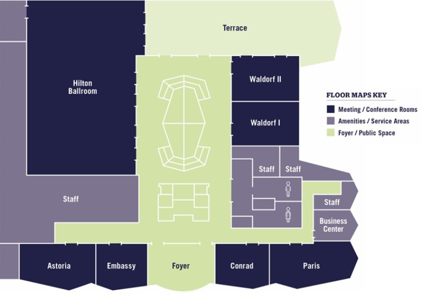 - Tlmočiaca technika: Áno (Hilton Ballroom, Waldorf, Paris, Conrad).