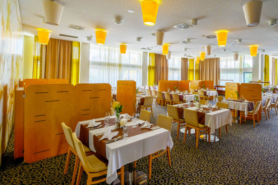 Kongres A+B+C je najväčší priestor hotela, ideálny pre kongresy, galavečere a svadby s kapacitou do 400 osôb, s variabilnými posuvnými stenami.