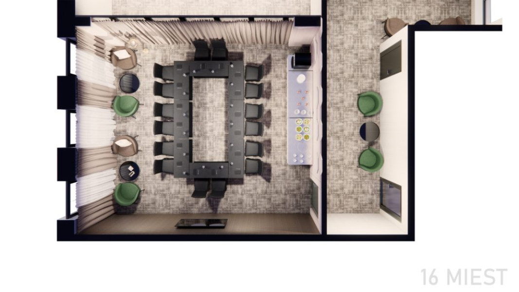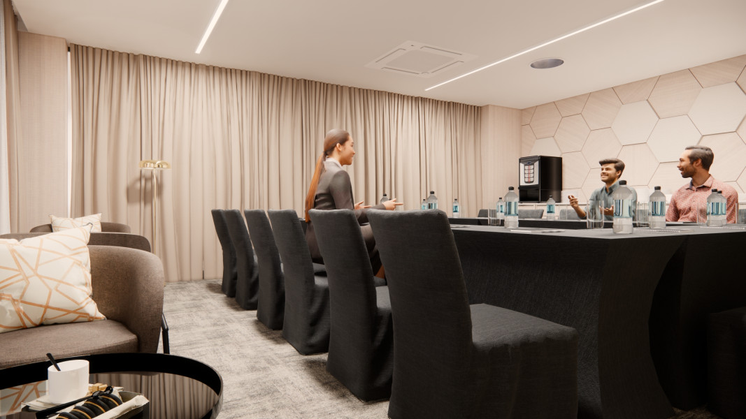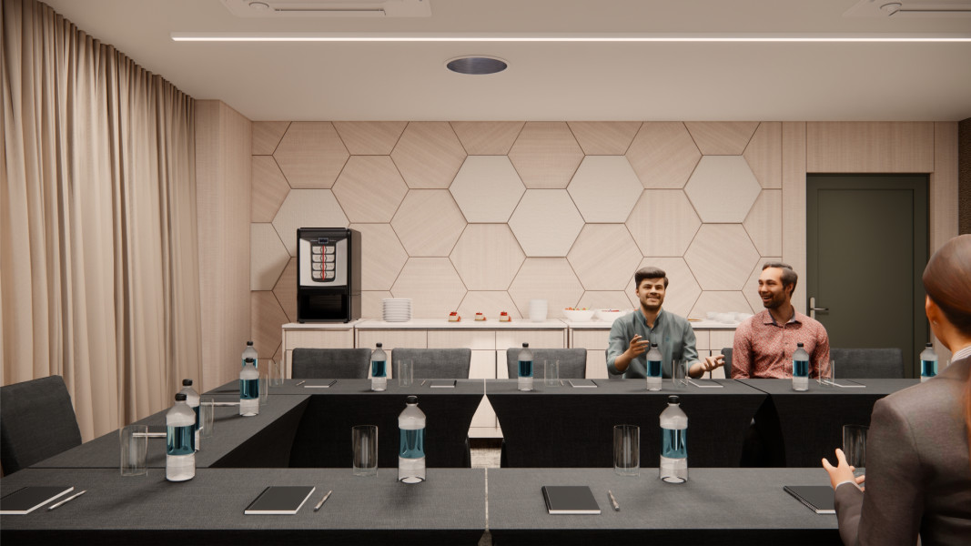 Salónik s rozlohou 40 m² je ideálny pre pracovné porady, menšie školenia, teambuildingy alebo súkromné oslavy, s príjemnou atmosférou a denným svetlom.