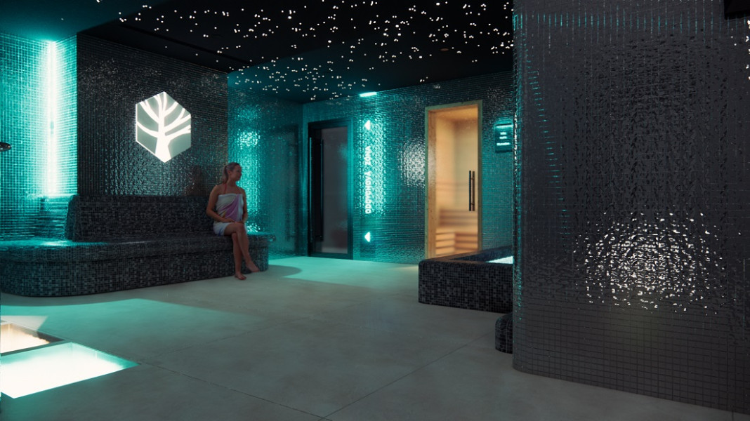 - Wellness centrum s bazénom, saunami a masážami.
